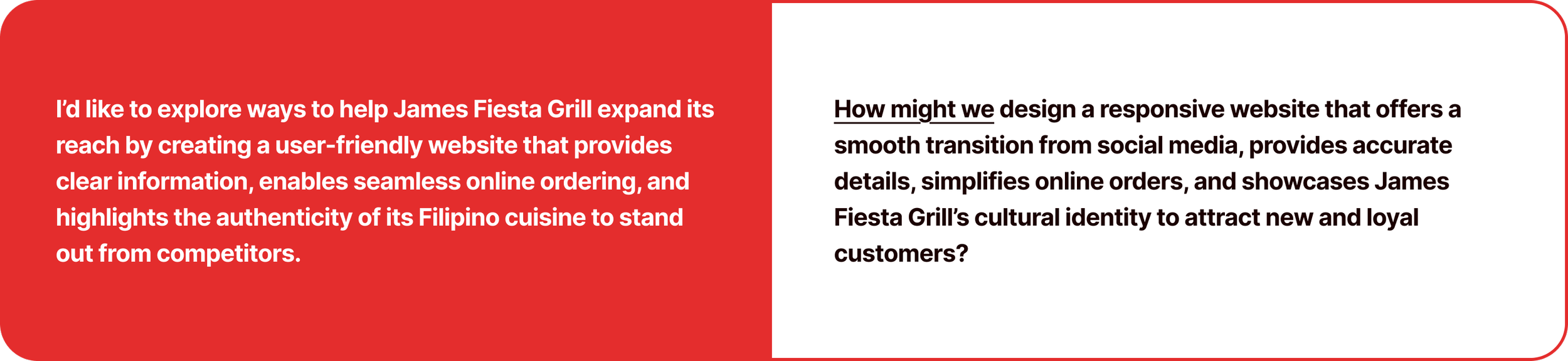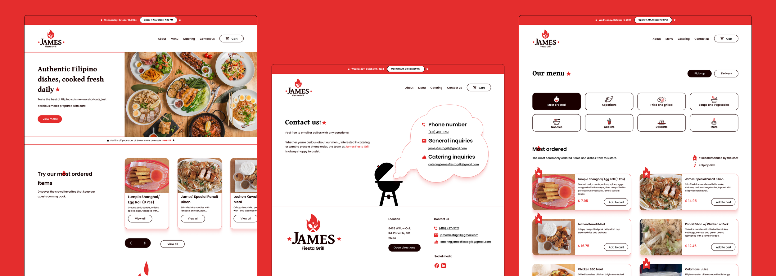 I aim to create an intuitive website that effectively showcases James Fiesta Grill for both new and loyal customers. This will provide an opportunity to display high-quality photos of each dish, clearly list operating hours (as some reviews mention customer confusion), offer food ordering options for takeout, delivery, and catering, and share updates about the establishment.