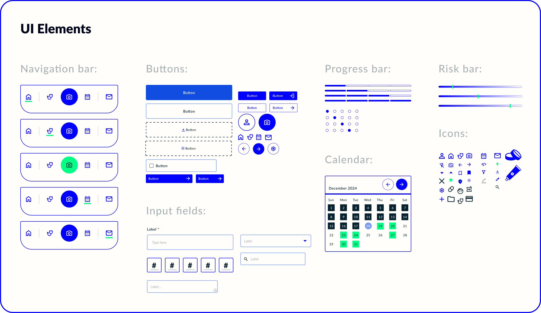 I aimed to create a product that embodies trust, reliability, inclusivity, and empathy—key values for any medical-related brand. To achieve this, I incorporated warm, and friendly illustrations to enhance storytelling, especially during onboarding. For the color palette, I chose shades of blue, a familiar color in healthcare, complemented by a pop of green for a modern, fresh touch.