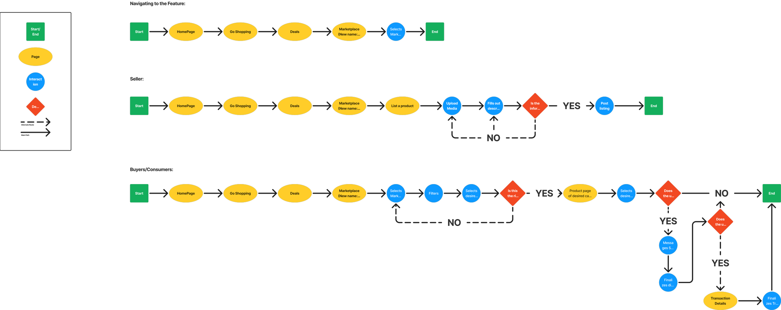 Going straight into the user flows, I developed 3 flows. These flows show the 3 pathways .