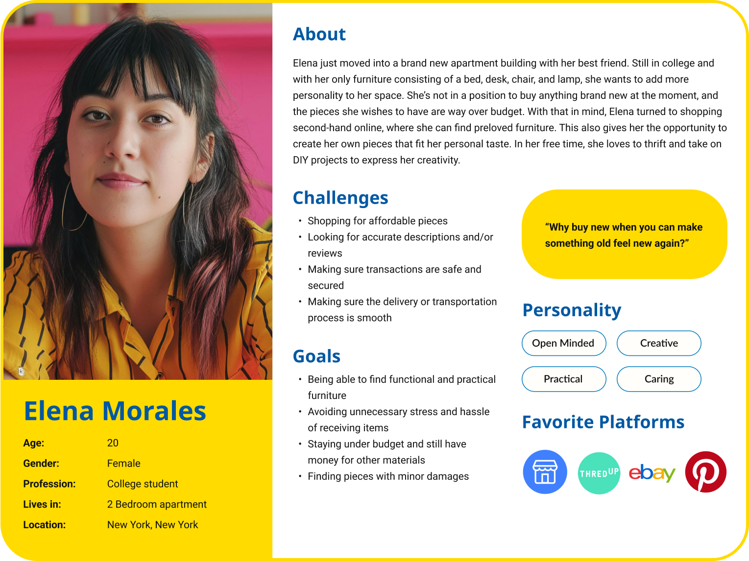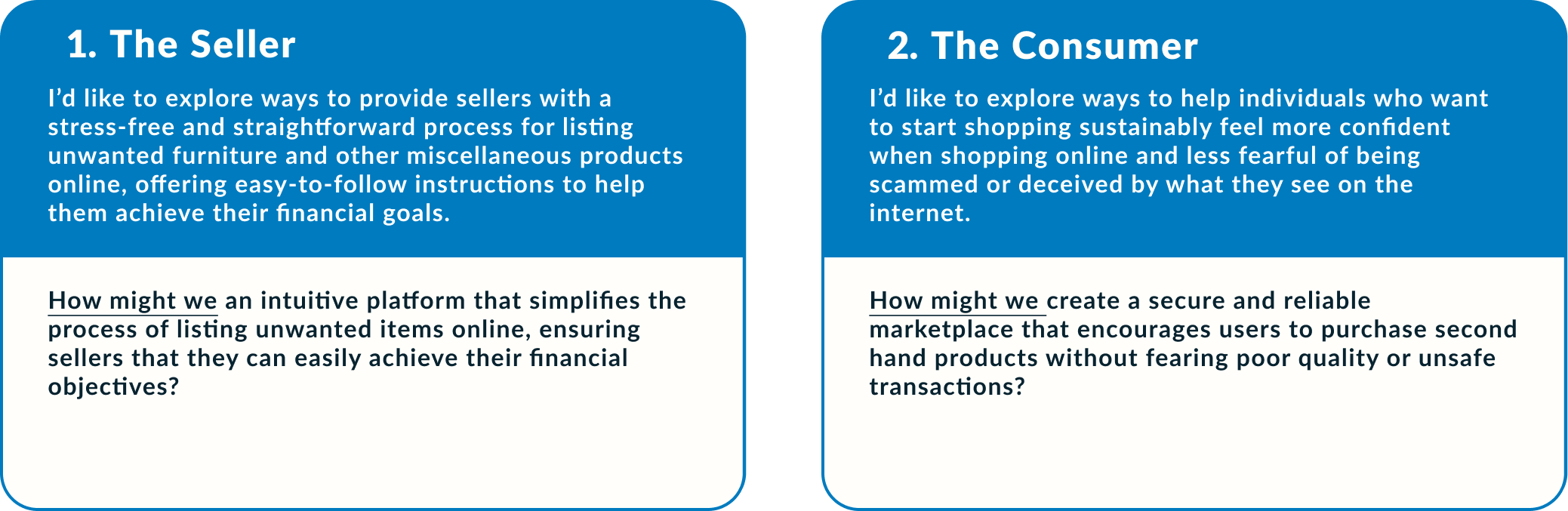I developed 2 personas that effectively represent the challenges and goals of my potential users, serving as a reference moving forward to align with user goals.